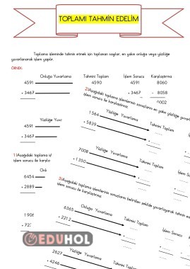 TOPLAMA İŞLEMİNDE TOPLAMI TAHMİN ETME