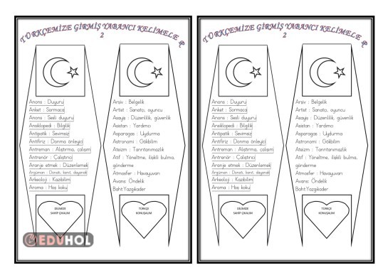 TÜRKÇE DİLİNE GİRMİŞ YABANCI KELİMELER -2- (DEFTER ÇALIŞMASI)