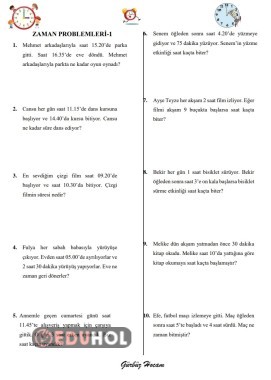 3. sınıf zaman ölçme problemleridir.