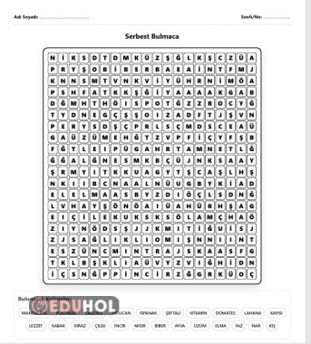 SEBZE VE MEYVELER BULMACA