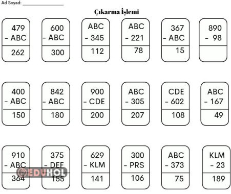 Çıkarma İşlemi- Verilmeyeni Bulma
