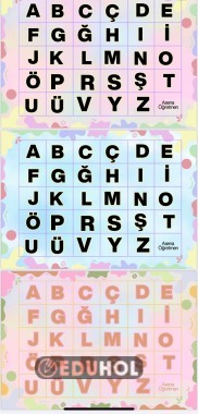 Alfabe sıralaması konusu için deftere dolaba aynaya eve yapıştırmak görseller