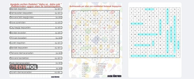Sıvıları Ölçme Etkinlik Kağıdı - Bulmaca