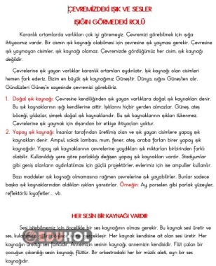 3. SINIF IŞIK VE SES ÜNİTESİ DEFTER ÇALIŞMASI