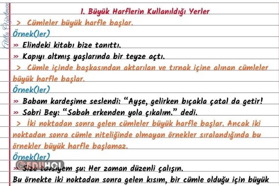 6 SAYFA BÜYÜK HARFLERİN KULLANILDIĞI YERLER DEFTER NOTU