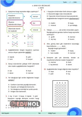 Fen Bilimleri 1. Ünite 10 Soruluk Test