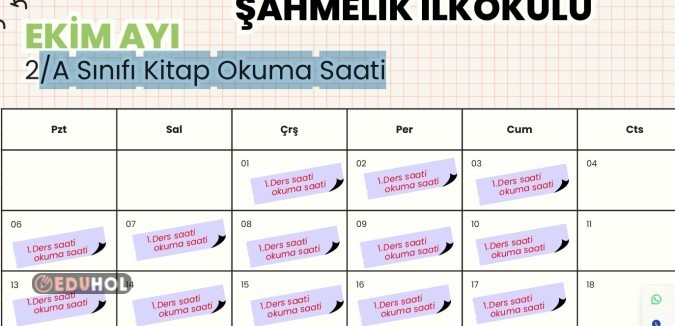 Ekim Ayı Kitap Okuma Saati Takvimi