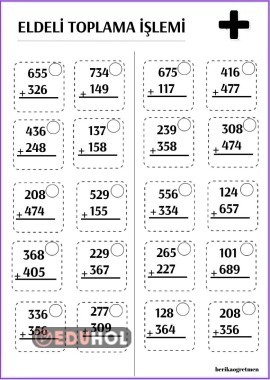 ELDELİ TOPLAMA İŞLEMİ ÇALIŞMA KAĞIDI