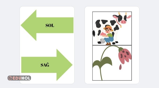 Akıllı tahtanın sağ ve sol üst köşelerine yapıştırarak sağ ve sol kavramını ayırt etmede kullanılabilir.