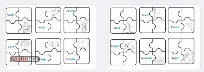 Kelimenin zıt anlamlısını bir renk, eş anlamlısını ayrı bir renk yazdırıp görsel boyatılabilir.