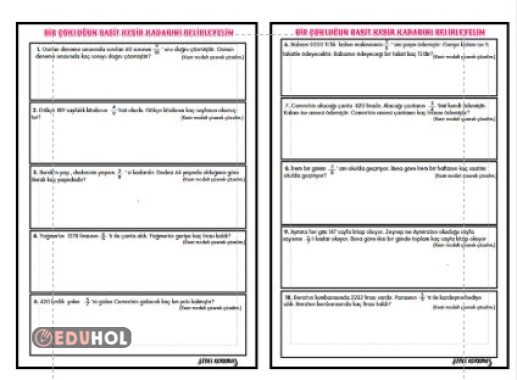 BİR ÇOKLUĞUN BASİT KESİR KADARINI BELİRLEME ETKİNLİĞİ 2