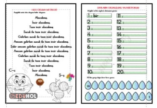 C VE Ş SESİ HIZLI OKUMA METNİ - 20 'YE KADAR SAYILARIN OKUNUŞUNU YAZMA