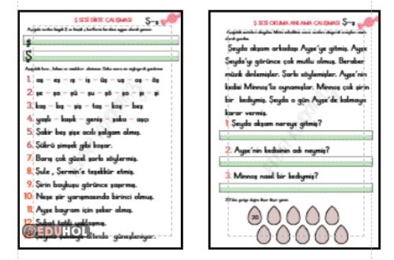 Ş SESİ DİKTE ÇALIŞMASI Ş SESİ OKUMA AMLAMA METNİ - SORU CEVAP ÇALIŞMASI 20'DEN GERİYE İKİŞER RİTMİK SAYMA
