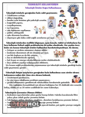 TEKNOLOJİYİ KULLANIYORUM - TEKNOLOJİYİ DOĞRU KULLANMA - ÇEVREYE OLUMSUZ ETKİSİ - DEFTERE YAPIŞTIRMA
