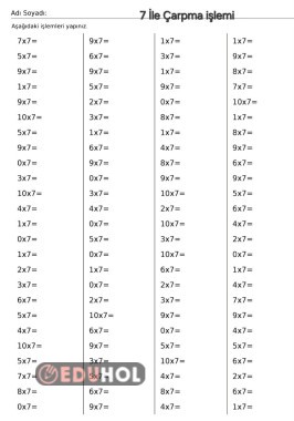 7 ile Çarpma işlemi Çalışma Yaprakları