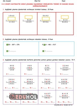 ÇIKARMA İŞLEMİNDE VERİLMEYEN TERİMİ VE RAKAMI BULMA (PDF)