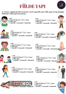 Bu etkinlikte öğrenciler, verilen görsellerden hareketle fiilleri belirler; fiillerin yapım eki alıp almadığını inceleyerek basit, türemiş ve birleşik fiilleri ayırt eder. Görsel destek sayesinde konu daha ka ...
