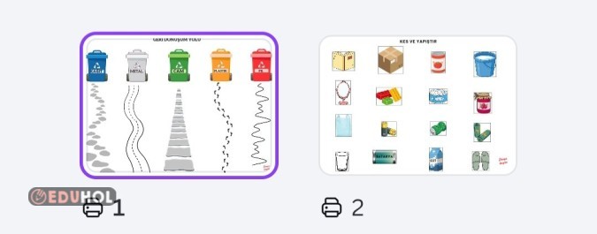 Geri dönüşüm etkinliği toplam 2 sayfa kes ve uygun yere yapıştır