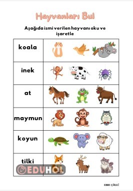 Verilen hayvan isimlerini okuyup hayvanın görselini bulur ve isaretle