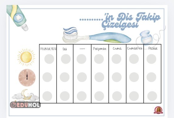 Diş takip çizelgesini kaplayıp özelleştirerek defalarca kullanabilirsiniz
