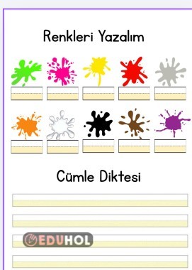 Hem renkleri yazıyoruz , hem genel tekrar yapıyoruz. Süreç değerlendirme dosyanıza ekleyebilirsiniz. Etiketler: dikte görseldikte renkler