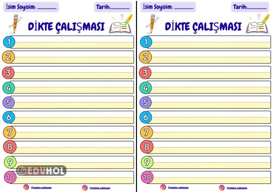 Dikte Çalışma Sayfası ( 7 ve 10 maddelik secenegiyle)
