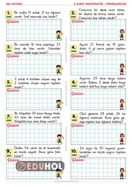 2. Sınıf toplama ve çıkarma işlemi on soruluk renkli sayfa