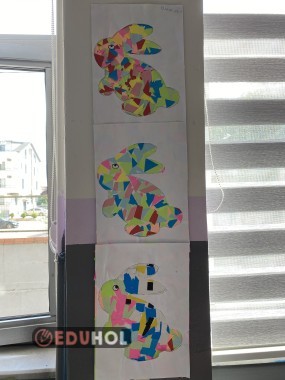 A4 kâğıdına küçük kestiğimiz kağıtları mozaik gibi yapıştırıyoruz. Tavşan şablonunun ortasını çıkartıyoruz. Daha sonra kâğıdın üzerine yapıştırıp. Etkinliğimizi tamamlıyoruz.