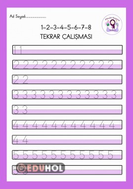 1'den 8'e Kadar Rakam Yazma Çalışması