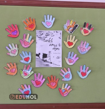 Bireysel farklılıklara saygı konulu pano çalışması için el izi şablonu. Etiketler: bireysel farklılıklar saygı degerler elizi pano