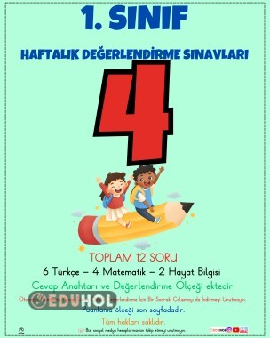 ⏩ Türkçe, matematik ve hayat bilgisi derslerinden oluşan özenle hazırladığım birinci sınıflar 4. haftalık değerlendirme sınavı yayında.