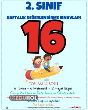 ⏩ Türkçe, matematik ve hayat bilgisi derslerinden oluşan özenle hazırladığım 16. haftalık değerlendirme sınavı yayında.