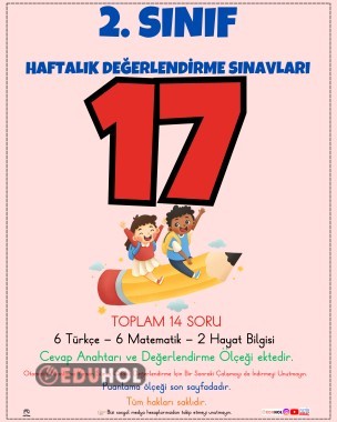 ⏩ Türkçe, matematik ve hayat bilgisi derslerinden oluşan özenle hazırladığım 17. haftalık değerlendirme sınavı yayında.