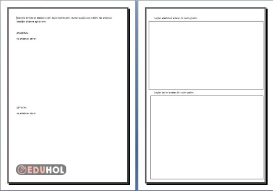 DEYİM VE ATASÖZÜ YAZARAK AÇIKLAMASINI VE RESMİNİ YAPMAK İÇİN ÇALIŞMA KAĞIDI