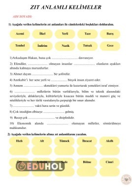 Zıt Anlamlı Kelimeler Çalışma Kağıdı