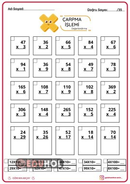 Çarpma İşlemi Çalışma Kağıdı