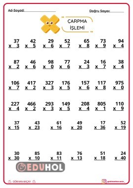2 Basamaklı X 1 Basamaklı / 3 Basamaklı X 1 Basamaklı / 2 Basamaklı X 2 Basamaklı