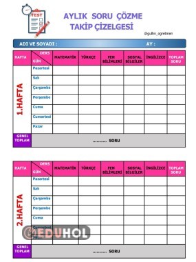 AYLIK SORU ÇÖZME TAKİP ÇİZELGESİ