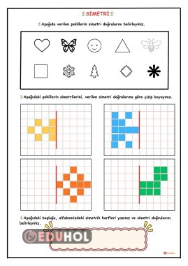 4. sınıf 29. hafta Matematik dersi "Simetri" konulu çalışma sayfası Etiketler: simetri geometri matematik4