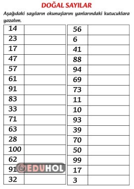 DOĞAL SAYILARIN OKUNUŞUNU YAZMA ETKİNLİĞİ