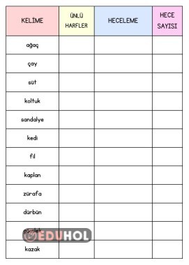 HARF HECE BİLGİSİ ÇALIŞMA KAĞIDI
