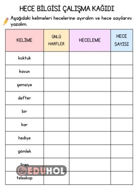 HECE BİLGİSİ ÇALIŞMA KAĞIDI