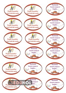 Küçük plastik sosluklara kuş yemi koyup etiketleri üzerine yapıştırabilirsiniz.