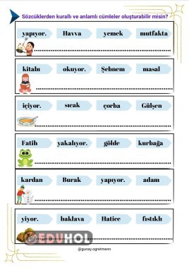 Kurallı ve Anlamlı Cümleler Oluşturma Etkinliği -2