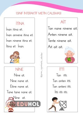 1. Sınıf i Sesi Metinleri İnteraktif Defter Çalışması