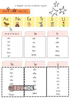3 Sayfa ANETİL Hece tablosu ve metinleri