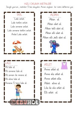 1.Sınıf L Sesi Cümle ve Hızlı Okuma Metinleri