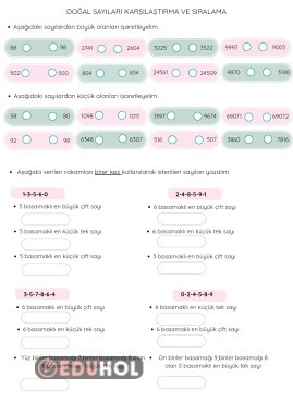 Doğal sayıları karşılaştırma ve sıralama etkinliği
