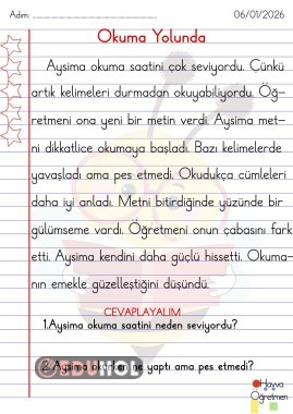 İlk metiin ile benzer kolay okuma metinleri. Çizgili kağıda yazılmıştır.