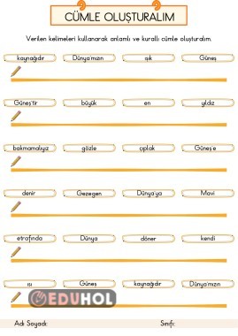 1.Sınıf Türkçe Dersi Anlamlı ve Kurallı Cümle Oluşturma Çalışması